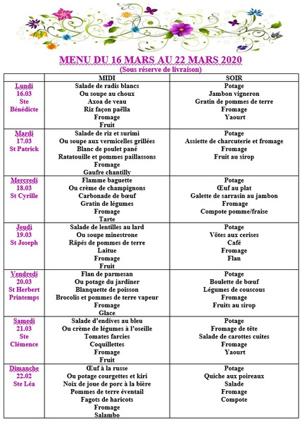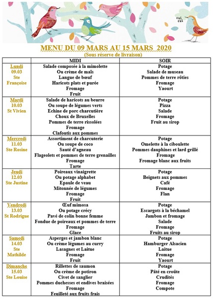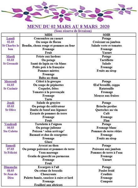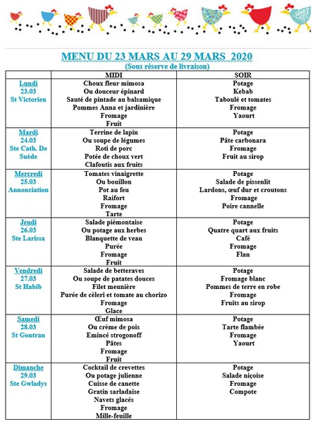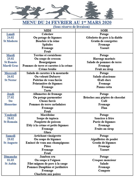 La réservation des repas se fait au minimum 4 jours à l’avance au secrétariat.